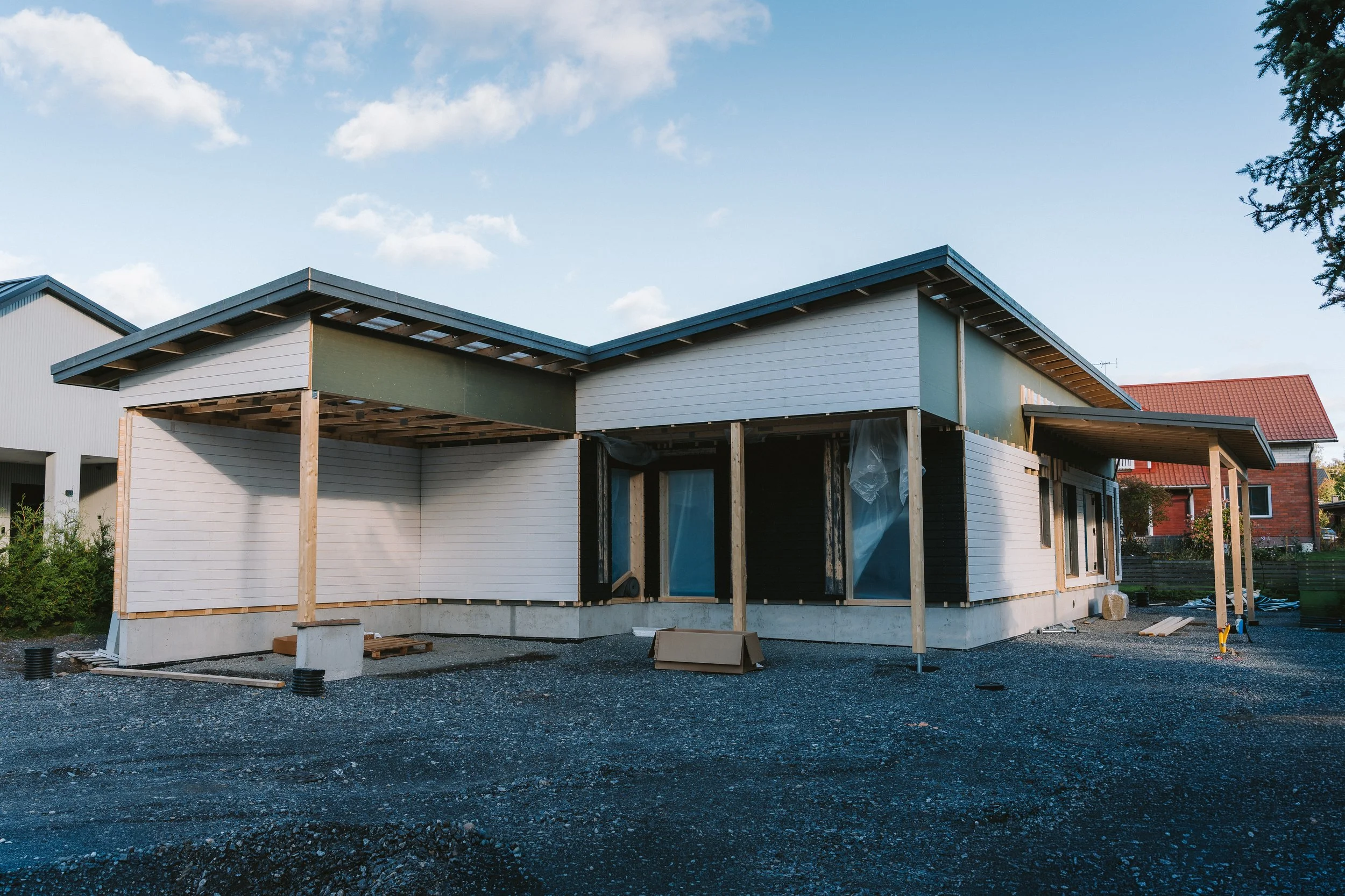 Suunnittelimme perheelle heidän toiveidensa ja budjettinsa mukaisen modernin omakotitalon, joka toteutettiin avaimet käteen -periaatteella. Toimituskokonaisuus sisälsi kaiken arkkitehti- ja rakennesuunnittelusta viimeisteltyihin pihoihin saakka.